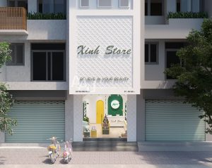Là mẫu thiết kế cửa hàng mỹ phẩm mang sắc xanh đầu tiên trong bộ ...