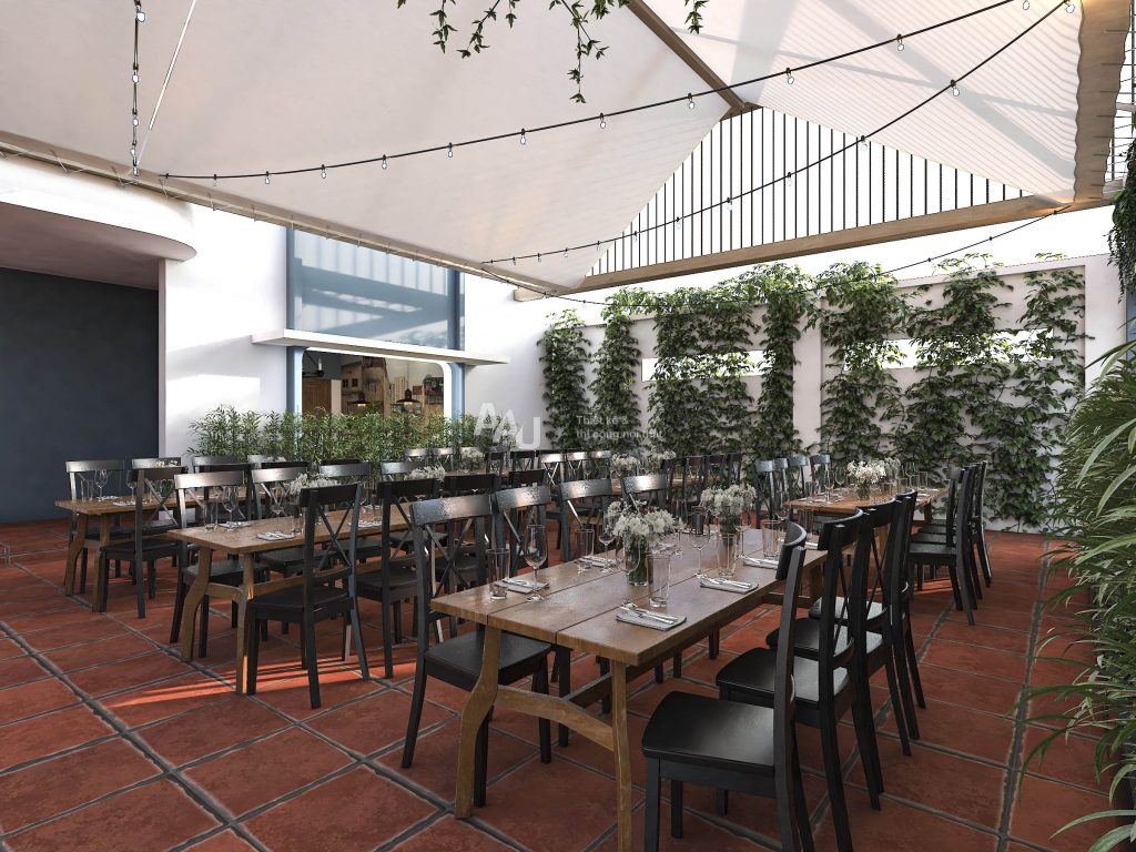 Để miêu tả không gian ăn uống ngoài trời của mẫu thiết kế nhà hàng sang trọng này, AAU xin được phép dùng hai từ “tinh tế, điềm đạm”. Kiến trúc sư đã sử dụng một bức tường tương tự không gian bên trong để tạo nên sự kết nối cho toàn bộ nhà hàng Saigon Chef’s. Vẫn là lối sắp xếp vật dụng có trật tự với những hàng dọc cùng sự đối xứng, tuy nhiên nơi đây lại toát lên sự trầm lặng.